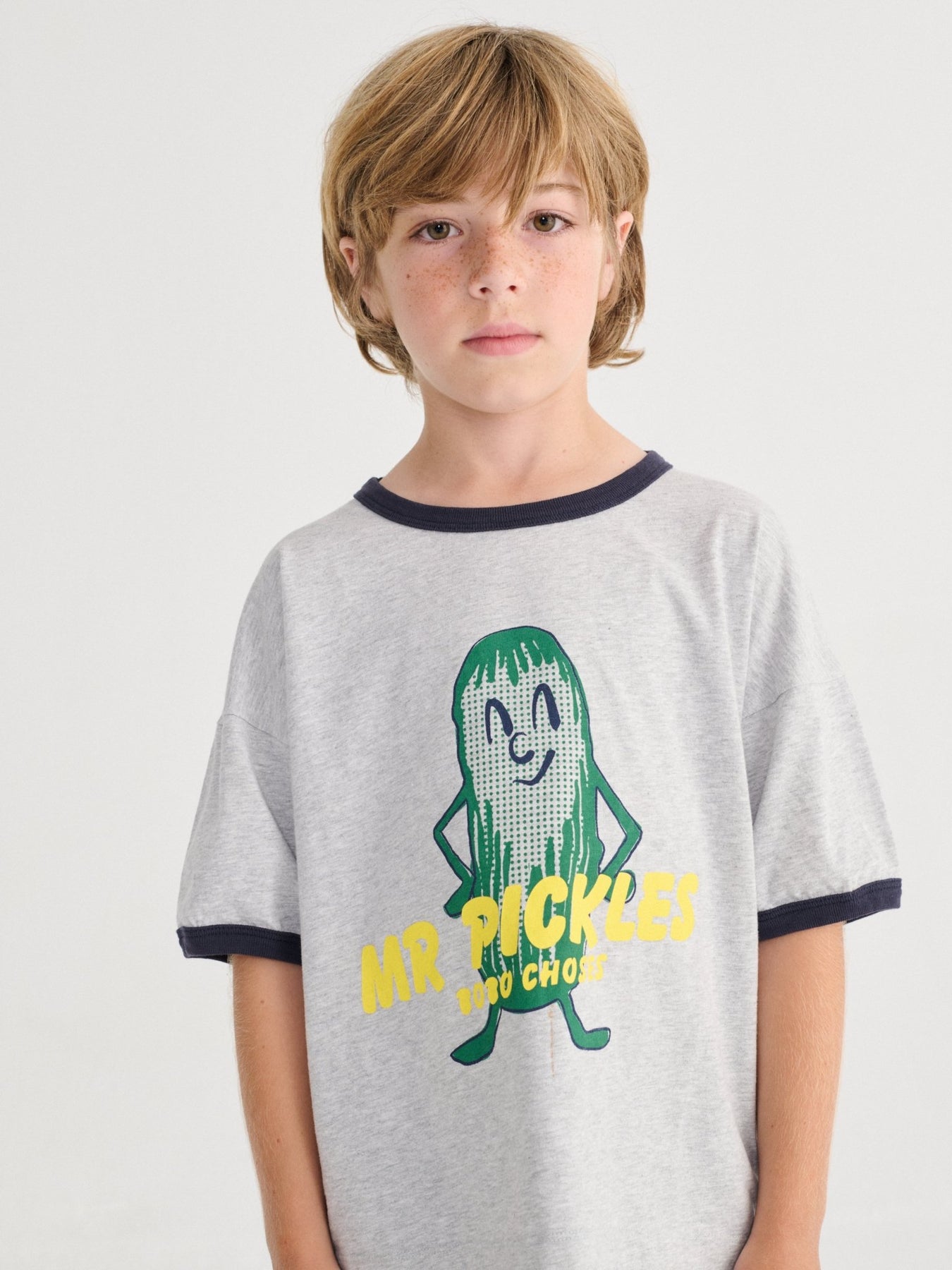 • Playful Mr Pickles graphic tee in soft heather grey with navy trims. Relaxed fit perfect for everyday comfort.